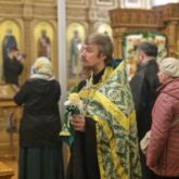 Затем настоятель храма отец Алексей обратился к прихожанам с пасторским словом, поздравил с Престольным праздником и поблагодарил за совместную молитву.