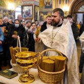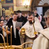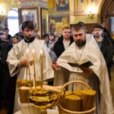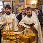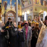 В праздник Сретения Господня в храме во имя преподобного Сергия Радонежского совершалась Божественная Литургия, по окончании которой совершалось Славление и Чин освящения свечей.