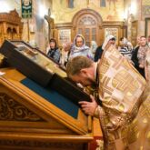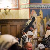 В канун праздника Воздвижение Честного и Животворящего Креста Господня в храме во имя преподобного Сергия Радонежского совершалось Всенощное бдение с литией