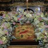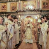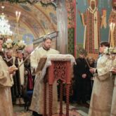 После отпуста Божественной литургии у иконы праздника на середине храма было совершено славление.