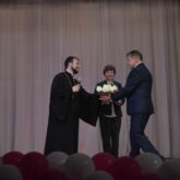 Отец Алексей поздравил всех собравшихся с праздником, поблагодарил за не легкий, но такой нужный и важный труд, а также, вручил цветы и поздравительный адрес директору управления соцзащиты «Жемчужина» Паршину С.В.