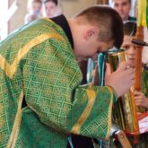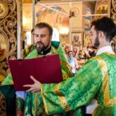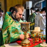 Богослужение возглавил настоятель храма священник Алексей Завогородний. Отцу Алексею сослужили клирики храма прп. Сергия Радонежского протоиерей Сергий Левищев, иерей Виктор Басов, клирик храма в честь иконы Божией Матери «Всех скорбящих Радость» иерей Роман Гармонов, диакон Сергий Корнеев и диакон Александр Карнаух.