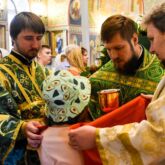 Затем настоятель храма отец Алексей обратился к прихожанам с пасторским словом, поздравил всех с Престольным праздником и поблагодарил за совместную молитву. В завершении своего слова отец Алексей поздравил протоирея Сергия Левищева с Днем Ангела, пожелав ему крепкого здравия и долголетия. Далее священники поздравили отца Алексея с Престольным праздником и пожелали ему помощи Божией в нелегком пастырском служении.