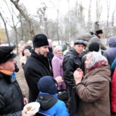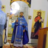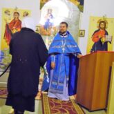 После отпуста настоятель обратился к собравшимся с приветственным словом, поздравил всех с Престольным праздником, поблагодарил строителей за предоставленную возможность совершить в этот день богослужение, а также, сказал теплые слова в адрес всех тех прихожан, кто трудился в устроении данного праздника. Отец Алексей, от лица всех собравшихся, выразил веру и надежду на то, что в скором времени строительство будет завершено, и богослужения начнут совершаться регулярно. В свою очередь, с Престольным праздником настоятеля поздравили и будущие прихожане храма, преподнеся букет цветов и памятный подарок.