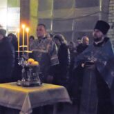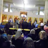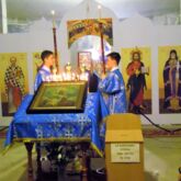 Торжества по случаю Престольного праздника строящегося храма начались вечером 5 ноября с Вечернего богослужения, на котором совершалось освящение хлебов и помазание святым елеем, а по окончании, Таинство Исповеди.