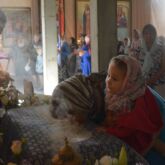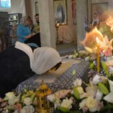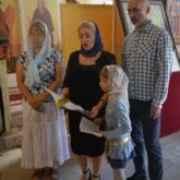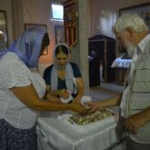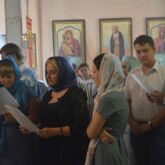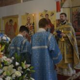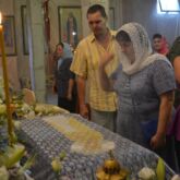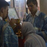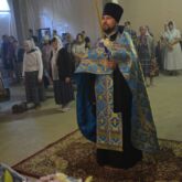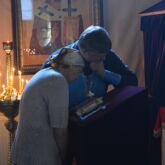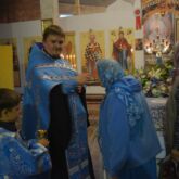 Сегодня утром совершалась Божественная Литургия, за которой многие прихожане, в том числе и дети, Причастились Святых Христовых Тайн. По окончании Литургии, настоятель и хор храма, под руководством матушки Елены Завгородней, совершили Славление Пресвятой Богородицы у святой Плащаницы, после чего все верующие смогли еще раз поклониться и прикоснуться к святой Плащанице.