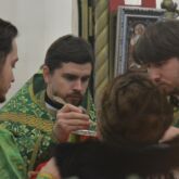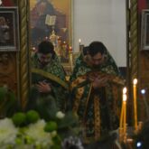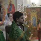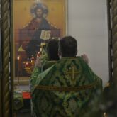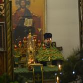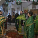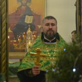 Благочинный Левобережного церковного округа священник Алексей Завгородний совершил Божественную Литургию в храме в честь иконы Божией Матери «Трех радостей»