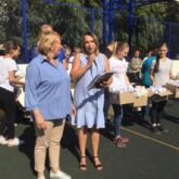 В этот же день, Татьяна Александровна директор Воскресной школы нашего храма, была приглашена в МБОУ СОШ 79, где на линейке, посвященной Дню здоровья, в дар храму школьники торжественно вручили белые цветы, для проведения акции.