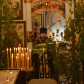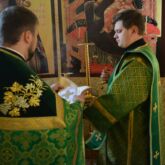 В нашем храме под праздник Святой Троицы совершалось Всенощное бдение с литией, а в воскресенье утром Божественная Литургия, Всенощное бдение с чтением коленопреклонных молитв и водосвятный молебен.