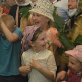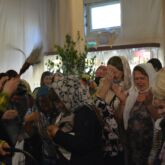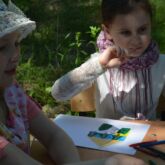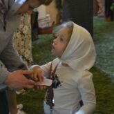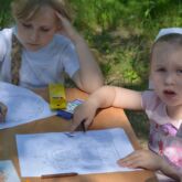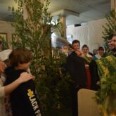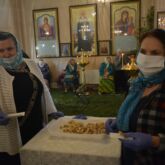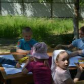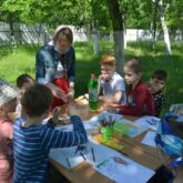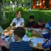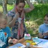 Детей по традиции, после Причастия отправили на зелёную прихрамовую территорию, в берёзки, где педагоги воскресной школы организовали их досуг, пока родители сугубо молились в храме.