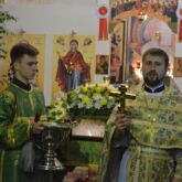 После Божественной Литургии, Вечернего богослужения и коленопреклоненных молитв, совершался Водосвятный молебен, после которого отец настоятель пригласил всех прихожан на праздничное мероприятие, посвященное Дню Рождения Церкви.