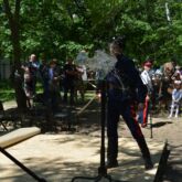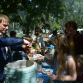 После концерта, всех присутствующих угостили кашей, приготовленной на полевой кухне и шашлыком.
