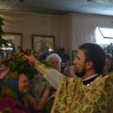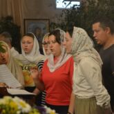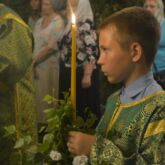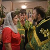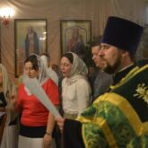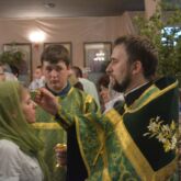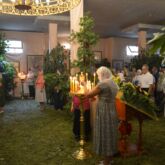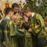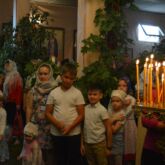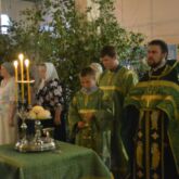 В этот величайший по своему значению праздник в нашем храме совершалось уставное богослужение, за которым пришли молиться множество верующих. Празднично украшенный руками прихожан храм, в день Святой Троицы напоминающий дубраву Мамре, радушно принял всех под свои своды.