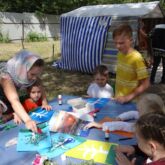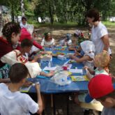 Для детей на территории храма были организованы тематические мастер-классы и веселые игры с призами и мороженным, а по окончании богослужения всех — и взрослых, и детей, пригласили на концерт и трапезу. В начале концерта за активное участие в жизни прихода и воскресной школы настоятель наградил самых активных родителей воспитанников Воскресной школы, атамана казачьего хутора Индычий, без помощи которого, не обходится ни одно храмовое мероприятие, педагогов, проводивших мастер-классы и творческие коллективы. На праздник были приглашены юные воспитанники детского приюта который расположен по ул. Туполева, с которым у нашего Прихода сложились дружественные взаимоотношения.