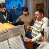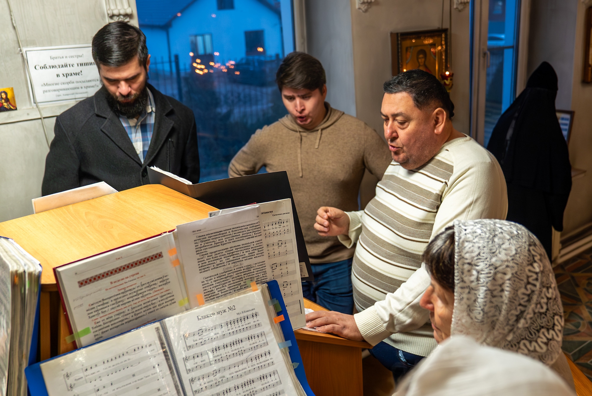 Богослужебные песнопения исполнял малый состав мужского хора под управлением регента Алексея Завалишина и смешанный хор Никольского храма под управлением регента Виктории Полукаровой.