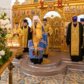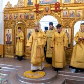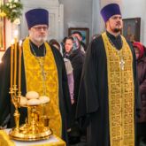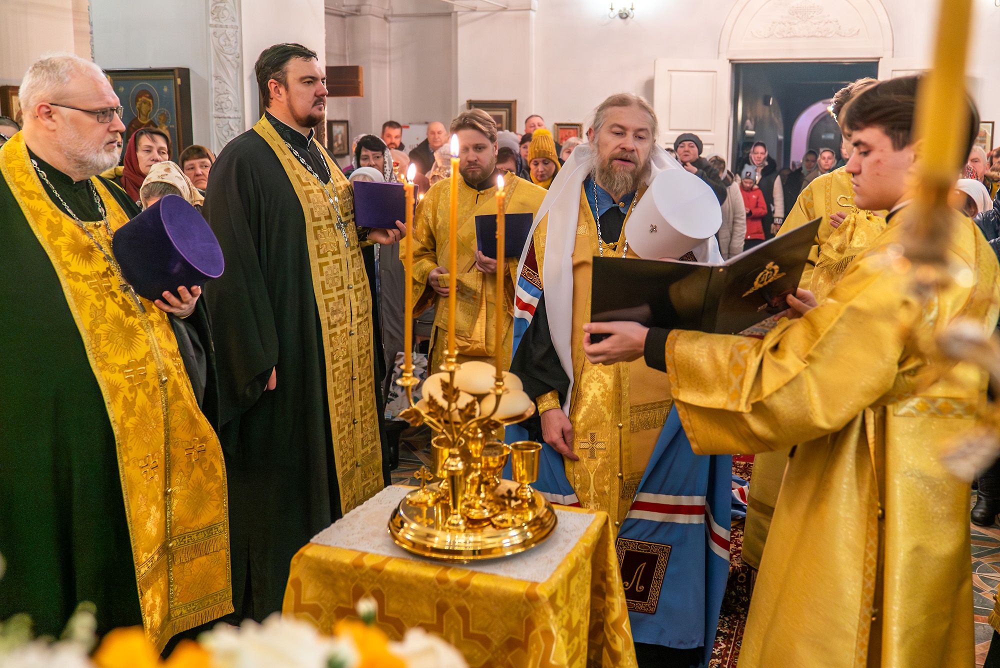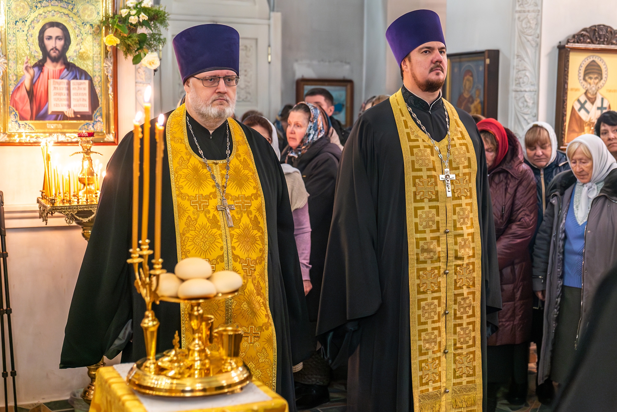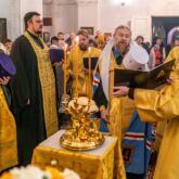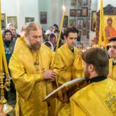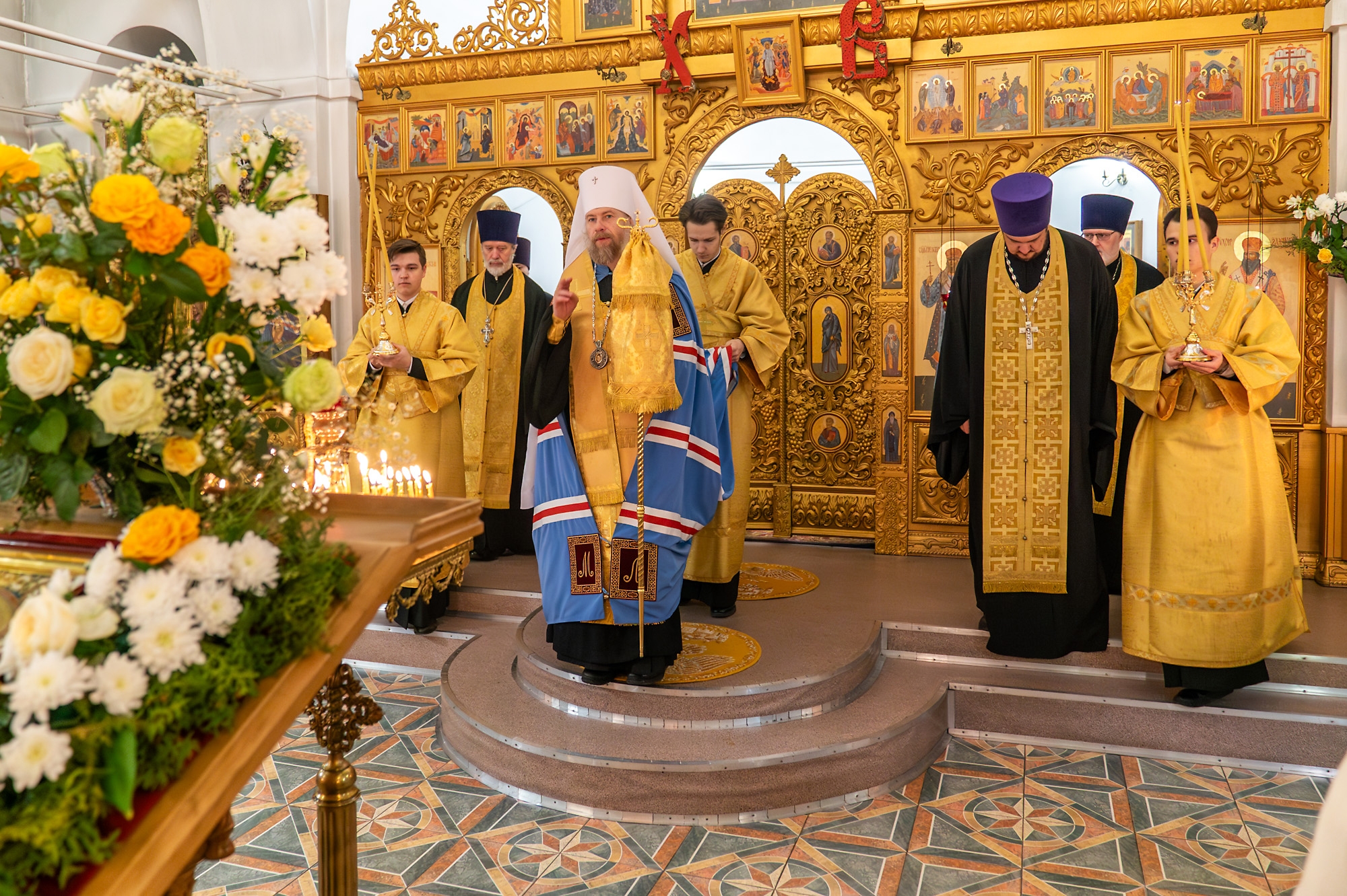 За всенощным бдением была совершена лития — усердное моление о мире всего мира, благостоянии Церкви Божией, о богохранимой стране нашей, о болящих, плененных и о всем народе. После пения праздничного тропаря владыка Леонтий совершил освящение хлебов.