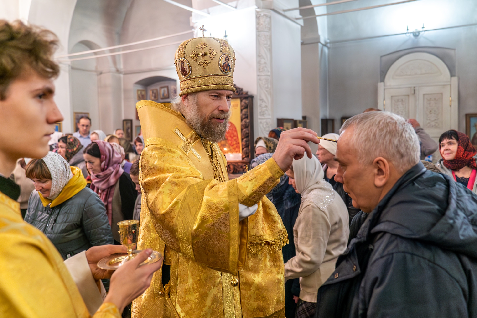 Во время чтения канонов Правящий Архиерей совершил помазание клириков и прихожан освященным елеем.