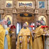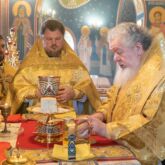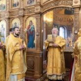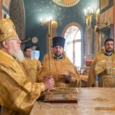 В совершении Божественной литургии Правящему Архиерею сослужили секретарь Воронежского Епархиального управления протоиерей Андрей Скакалин, благочинный Левобережного церковного округа священник Алексий Завгородний, настоятель храма преподобного Сергия Радонежского протоиерей Александр Домусчи и клирики храма.