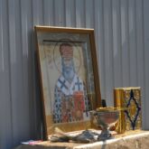 На месте строительства храма в честь святителя Серафима, архиепископа Богучарского благочинным Левобережного церковного округа священником Алексеем Завогородним был отслужен первый молебен
