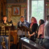 Богослужебные песнопения исполнили смешанный хор под управлением регента Алексея Завалишина.
