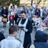 19 апреля, в Великую Субботу, после Литургии настоятель храма во имя прп. Сергия Радонежского протоиерей Роман Вылуск совершил традиционное освящение пасхальных куличей, яиц и брашна.