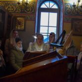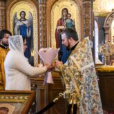 По окончании богослужения настоятель храма священник Алексей Завгородний поздравил руководителя молодежного хора матушку Веру Басову с Днем рождения.