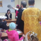 Сегодня провели первое занятие в стенах нового здания Воскресной школы. Дети были явно довольны этим первым днем. По традиции, после урока дошколята Причащались Святых Христовых Тайн. А по окончании Божественной Литургии настоятель освятил здание школы.