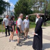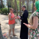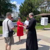 Активисты вместе с клириком храма во имя святителя Спиридона Тримифунского, ответственным по миссионерскому служению Левобережного благочиния иереем Василием Гайковым раздали листовки «Святая Троица – основание жизни» и рассказали о празднике.