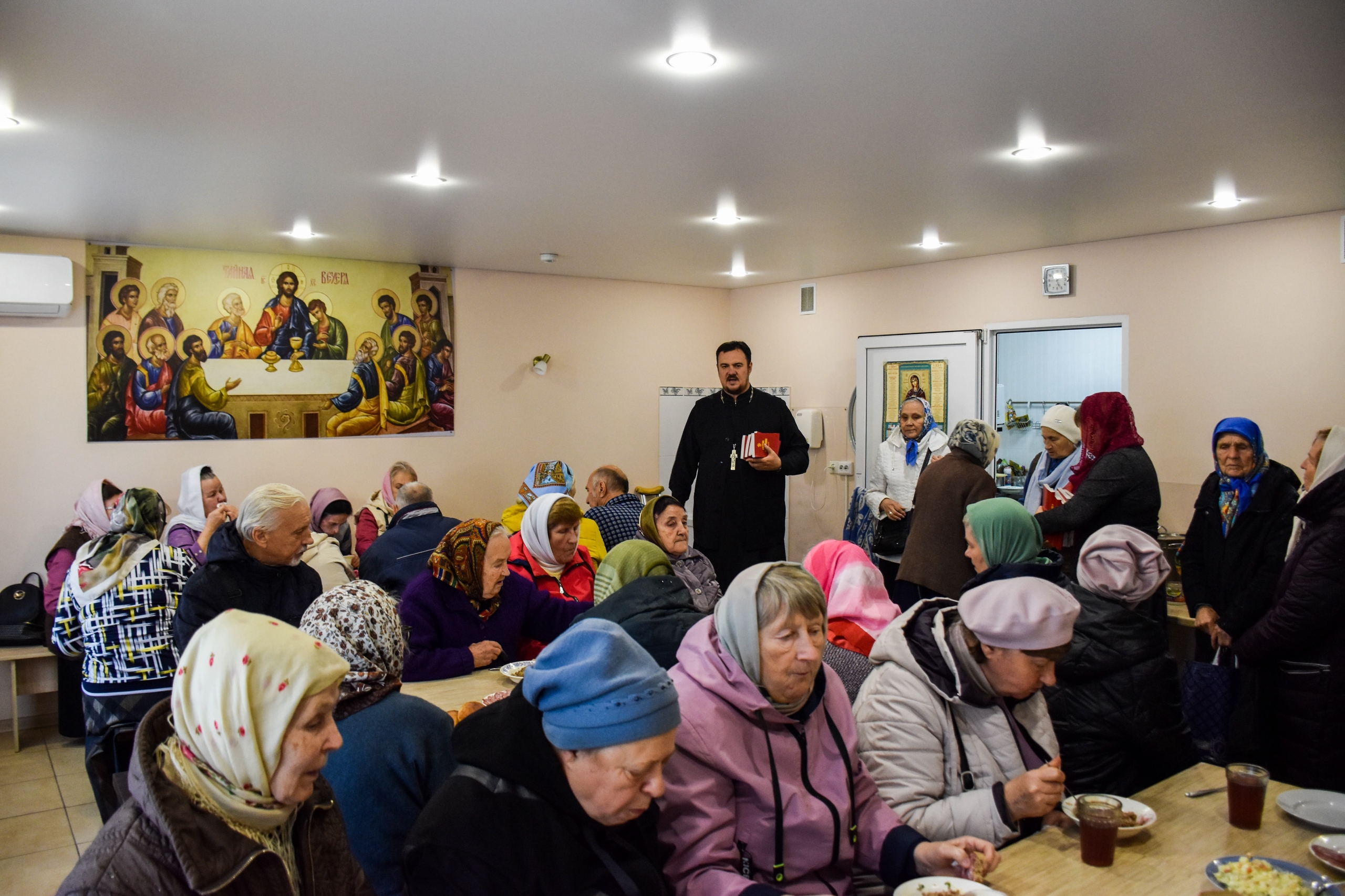 За трапезой настоятель храма протоиерей Роман Вылуск тепло поздравил прихожан с их праздником и пожелал собравшимся мудрой, бодрой и радостной старости, в покаянии и очищении души и тела.