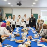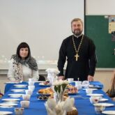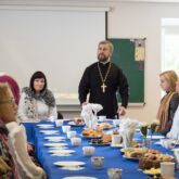 Затем, в Воскресной школе состоялась встреча настоятеля храма с воспитателями и учителями образовательных учреждений микрорайона ВАИ. Отец Алексей поблагодарил собравшихся за взаимодействие в проведении акции «Белый цветок» и обсудил пути дальнейшего сотрудничества. Особыми гостями встречи в этот день стали руководитель Департамента социальной защиты Воронежской области Сергеева Ольга Владимировна и директор центра социальной защиты Левобережного района Паршин Сергей Васильевич.