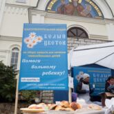 Приобретая предоставленную продукцию люди оставляли волонтерам свои пожертвования в пользу страдающих детей.