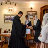 По окончании Божественной литургии в здании Воскресной школы, настоятель храма во имя преподобного Сергия Радонежского протоиерей Роман Вылуск поздравил коллектив преподавателей