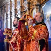 Богослужение возглавил настоятель храма священник Алексей Завогородний, которому сослужили священник Сергий Левищев, священник Виктор Басов, диакон Виктор Кораблин и диакон Александр Карнаух.