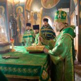 Во время чтения благодарственных молитв по Святом Причащении Архипастырь преподал всем богомольцам крест для лобызания, а при выходе из храма благословил всех молящихся и снова поздравил с престольным праздником.