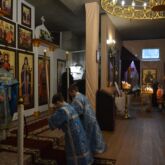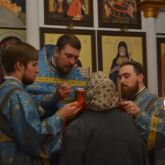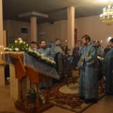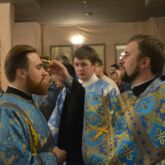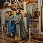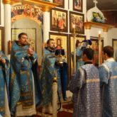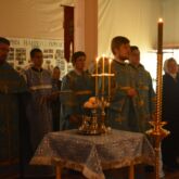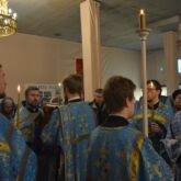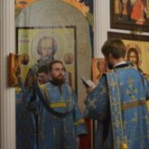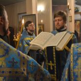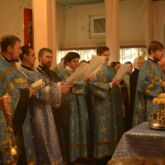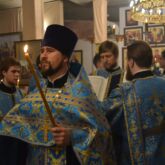 Престольный праздник храма — это всегда радостное событие, когда особым образом мы можем прославить Божию Матерь, когда с особой силой можно почувствовать Ее благое присутствие в нашей жизни и без устали воспевать Ей хвалебные гимны за праздничным богослужением. Торжественное богослужение началось со Всенощного бдения, которое возглавил благочинный Левобережного церковного округа и настоятель храма в честь иконы Божией Матери «Всех скорбящих Радость» иерей Алексей Завгородний, в сослужении благочинного Успенского семинарского храма иерея Дмитрия Трунова, клирика храма святого великомученика и целителя Пантелеимона при Военно-воздушной академии имени проф. Н.Е. Жуковского и Ю.А. Гагарина иерея Романа Борисова, диакона Успенского семинарского храма Петра Бакулина и диакона Романа Гармонова. Необыкновенная атмосфера вечернего богослужения, украшенная душевным пением акафиста Пресвятой Богородице духовенством и студентами ВДС никого не оставила равнодушным.