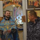 На следующий день после Божественной Литургии и молебна настоятеля и прихожан поздравили с праздником приглашенные гости — начальник ФГКУ «УВО ВНГ России по Воронежской области» полковник полиции Спиридонов Е.В. и его сотрудники, заместитель директора КУ ВО «Управление социальной защиты населения Левобережного района города Воронежа» Провоторова С.Н. и атаман хутора Подгорное Дуванов Е.И.