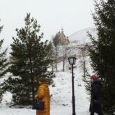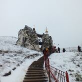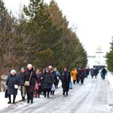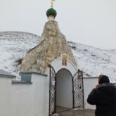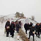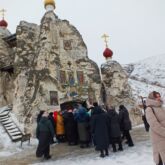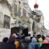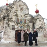 Затем паломники посетили большой пещерный двухпрестольный Спасский храм, далее уникальный пещерный Серафимовский храм, пещеру Покаяния, кельи монахов-отшельников, столпников, а также посетили наземный храм в честь иконы Божией Матери «Взыскание погибших» с многочисленными святынями и поднялись на гору Голгофу.