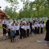 В заключении было сделано общее фото на память, а затем все собрались за общей трапезой в воскресной школе, которую заботливо приготовили родители.