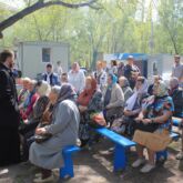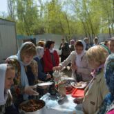 В воскресенье, 30 апреля, воспитанники воскресной школы нашего храма посетили строящийся храм в честь иконы Божией Матери «Всех скорбящих Радость» в парке Южный по ул. Менделеева. С 2015 года настоятелем и куратором этого храма является священник Алексей Завгородний. На сегодняшний день, в силу различных обстоятельств, строительство продолжается дольше запланированного, и вот для того чтобы как-то порадовать прихожан и разделить с ними радость о Воскресшем Господе отец Алексей благословил проведение Пасхального утренника на территории храма. По окончании утренника все присутствующие были приглашены на праздничную трапезу.