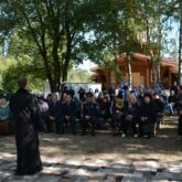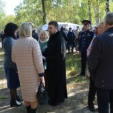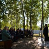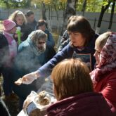 Солнечный день порадовал собравшихся теплом и подчеркнул яркие краски осени. После концертной программы всех присутствующих пригласили отведать каши, приготовленной на полевой кухне.