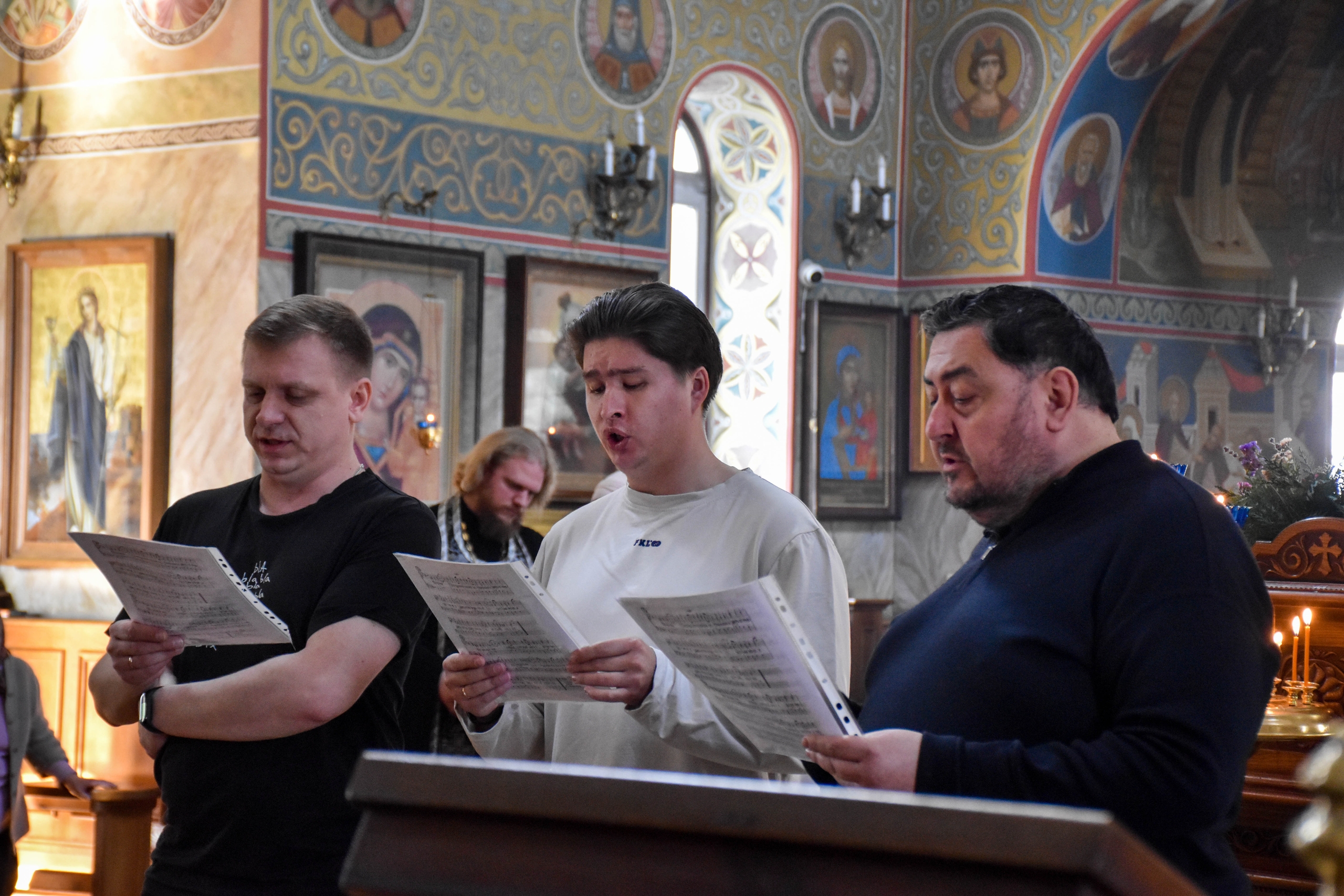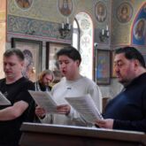 Богослужебные песнопения исполнил мужской хор под управлением регента Алексея Завалишина.