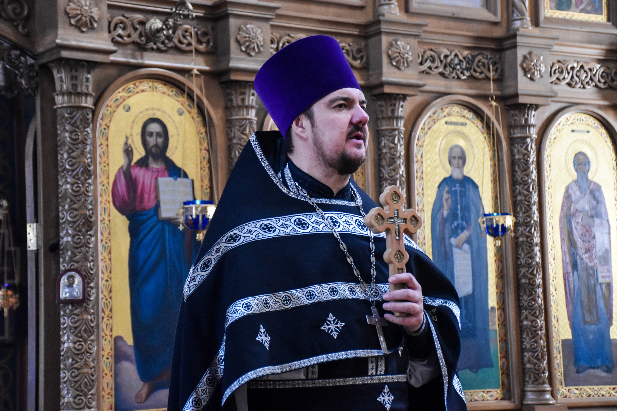 По окончании литургии настоятель обратился к прихожанам со словами проповеди.