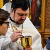 После пения запричастного стиха клирик храма иерей Иоанн Тихонов зачитал ежегодное обращение Святейшего патриарха Моского и всея Руси Кирилла по случаю празднования Дня православной молодёжи.