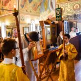 В день празднования Преображения Господа Бога и Спаса нашего Иисуса Христа в храме во имя преподобного Сергия Радонежского совершалась Божественная литургия