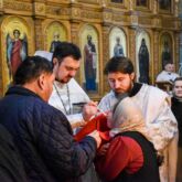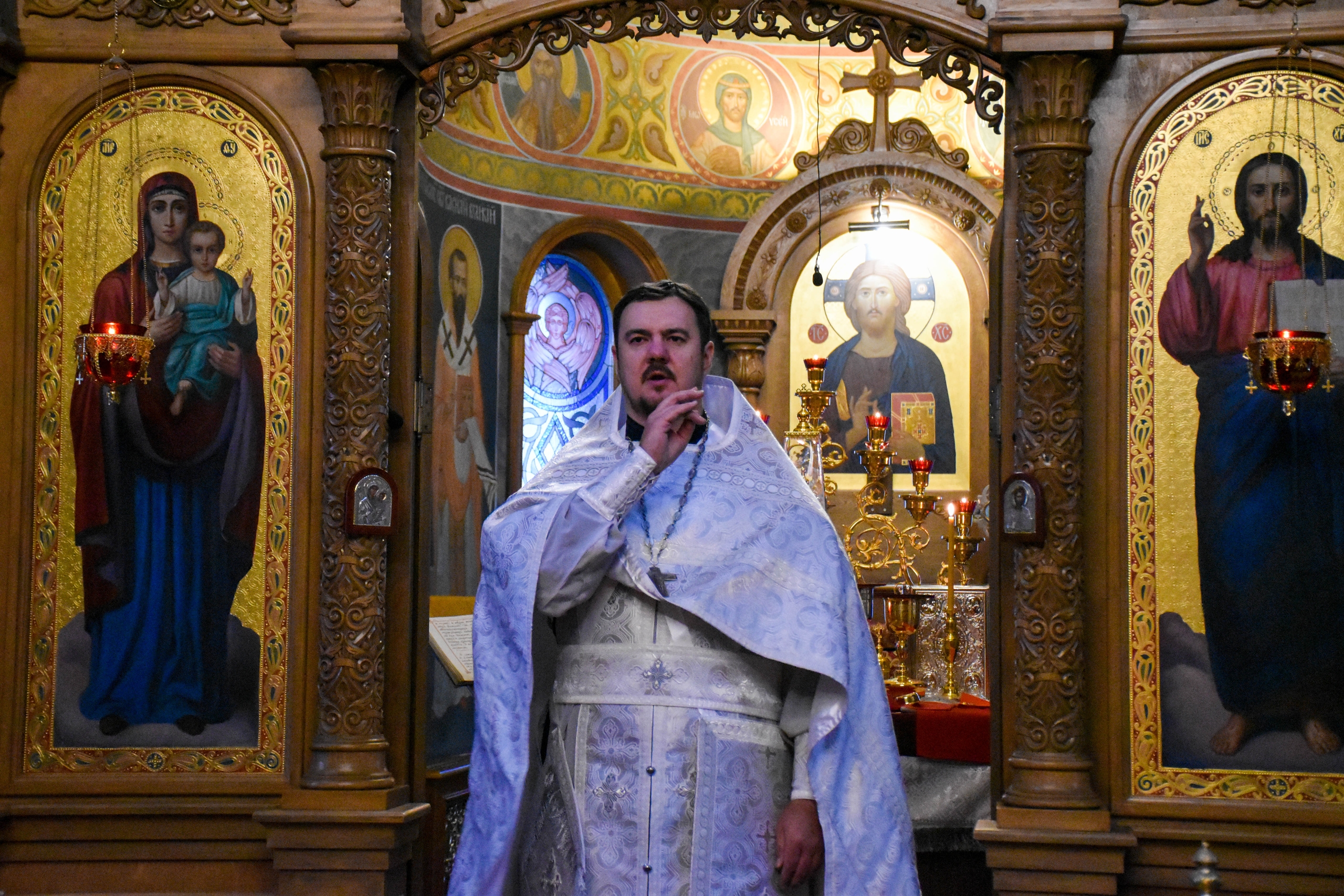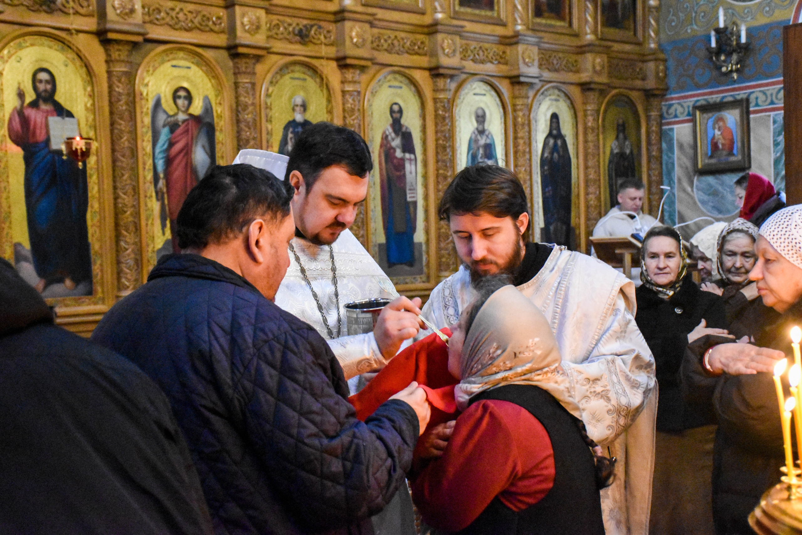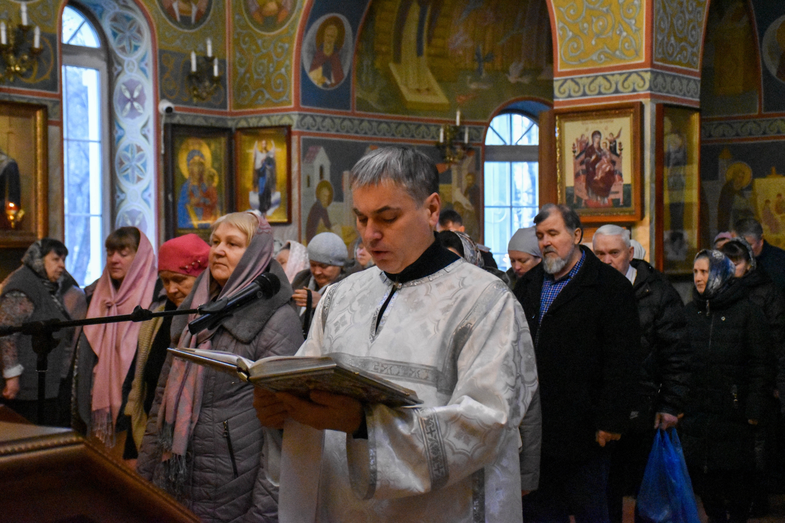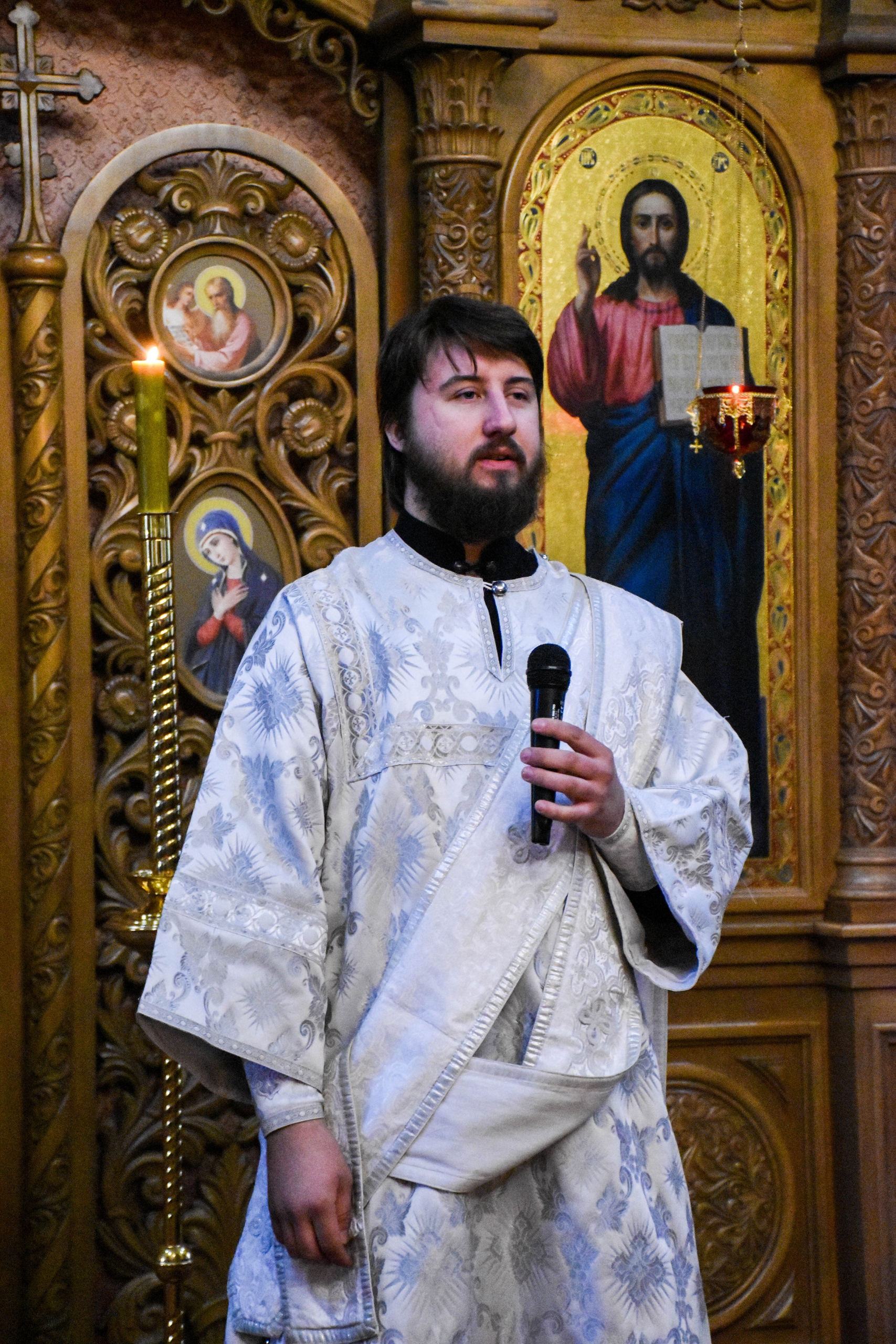 Перед причастием со словами проповеди к прихожанам обратился клирик храма диакон Александр Карнаух.