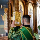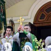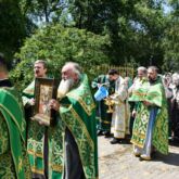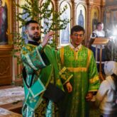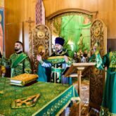 В День Святой Троицы — Пятидесятницы, в храме во имя преподобного Сергия Радонежского совершалась Божественная литургия