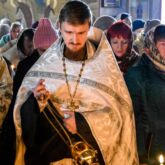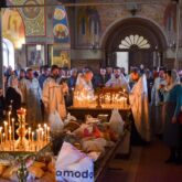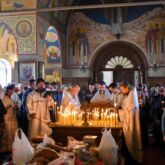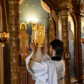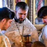 Богослужение возглавил настоятель храма священник Алексей Завогородний. Отцу Алексею сослужили священник Сергий Левищев, священник Виктор Басов и диакон Александр Карнаух.