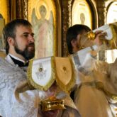 Песнопениями литургию сопровождал хор под управлением регента Алексея Завалишина.