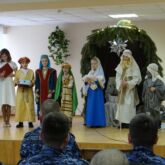 В начале мероприятия по уже сложившейся доброй традиции с наступившим Рождеством Христовым личный состав поздравили воспитанники Воскресной школы храма в честь иконы Божией матери «Всех скорбящих Радость». Дети подготовили рождественский вертеп с музыкальными номерами, а также прочитали стихи, прославляющие рождение Христа.