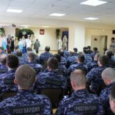 С духовным напутствием к офицерам обратился настоятель храма в честь иконы Божией матери «Всех скорбящих Радость». Священник Алексей Завгородний пожелал мира, бодрости духа и Божьего благословения на предстоящий год.